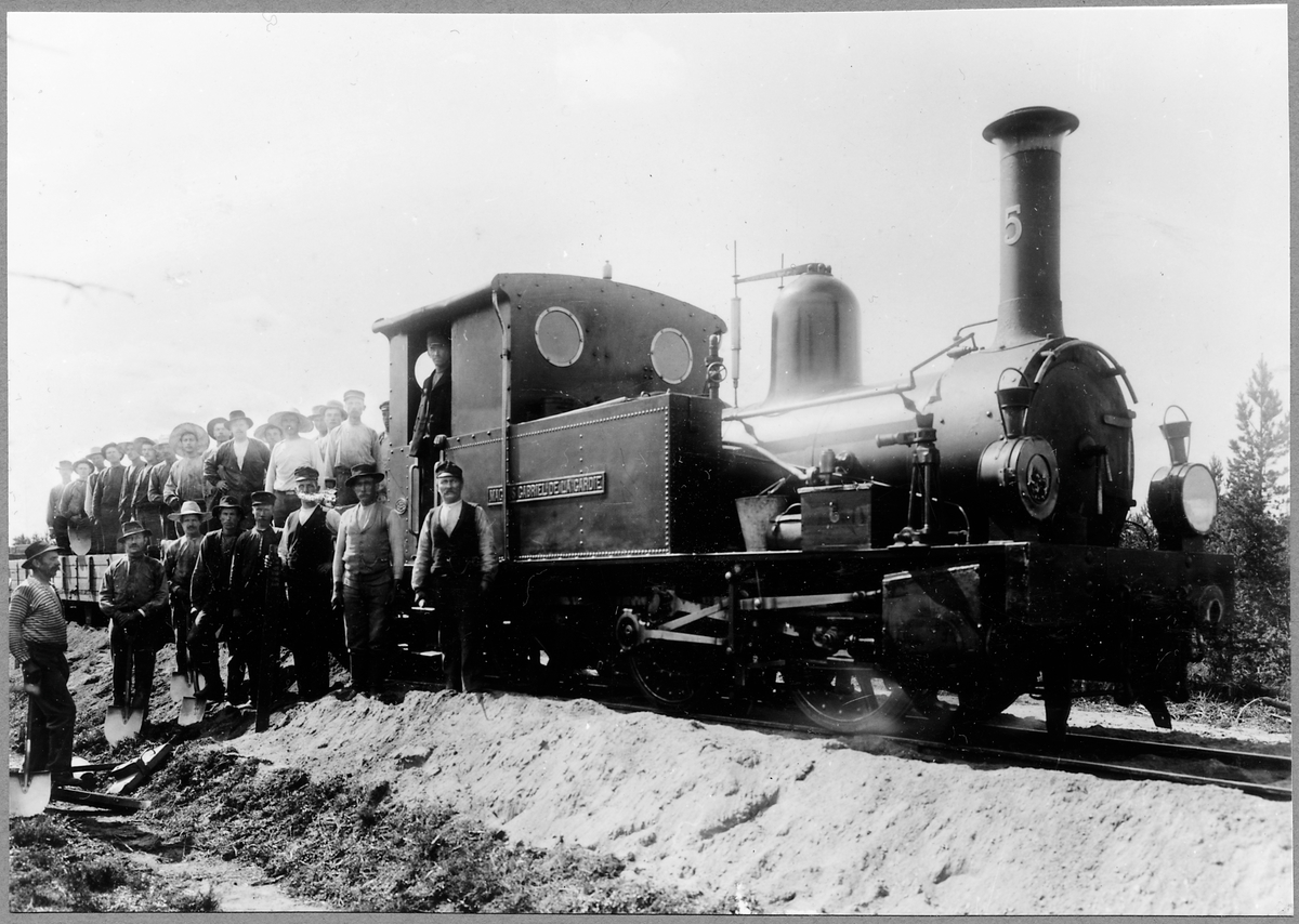 Vetlanda-Målilla järnväg, HvMJ lok 5 "Magnus Gabriel de la Gardie" på linjen mellan Vetlanda och Målilla. Grusning av banan.