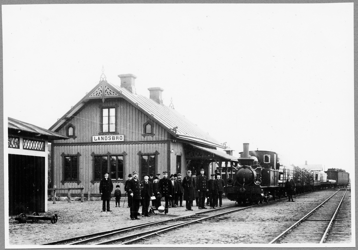 Vetlanda-Sävsjö järnväg, HvSJ lok 3 "Sten Sture" med blandat tåg vid Landsbro station.