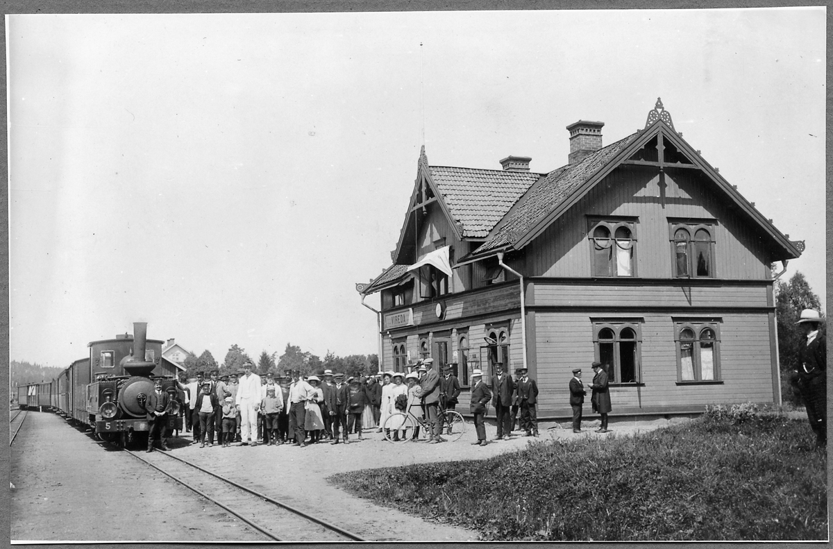 Jönköping - Gripenbergs Järnväg, JGJ lok 5 med tåg vid Vireda station.