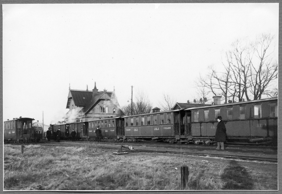 Jönköping-Gripenbergs Järnväg, JGJ. Persontåg vid Jönköping Östra år 1920.