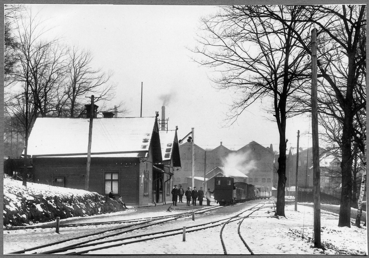 Jönköping-Gripenbergs Järnväg, JGJ. Godståg vid Huskvarna Östra station år 1915.