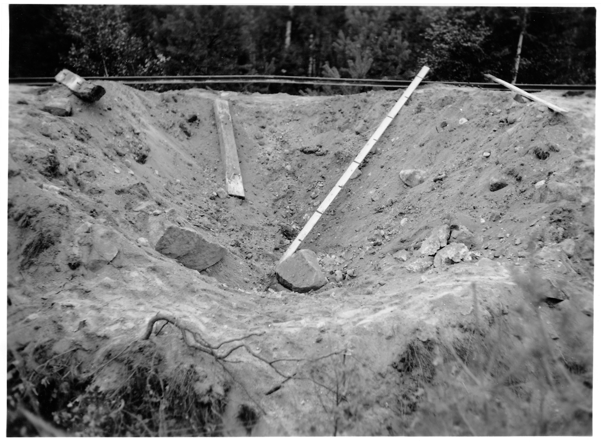 Pågående upprivning av Vimmerby – Ydrebanan. Mätning av effekter efter störtbombs övningar.