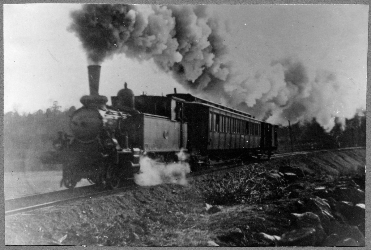 Tåg på linjen mellan Åtvidaberg och Bjärka - Säby. Östra Centralbanans Järnvägar, ÖCJ lok 2.