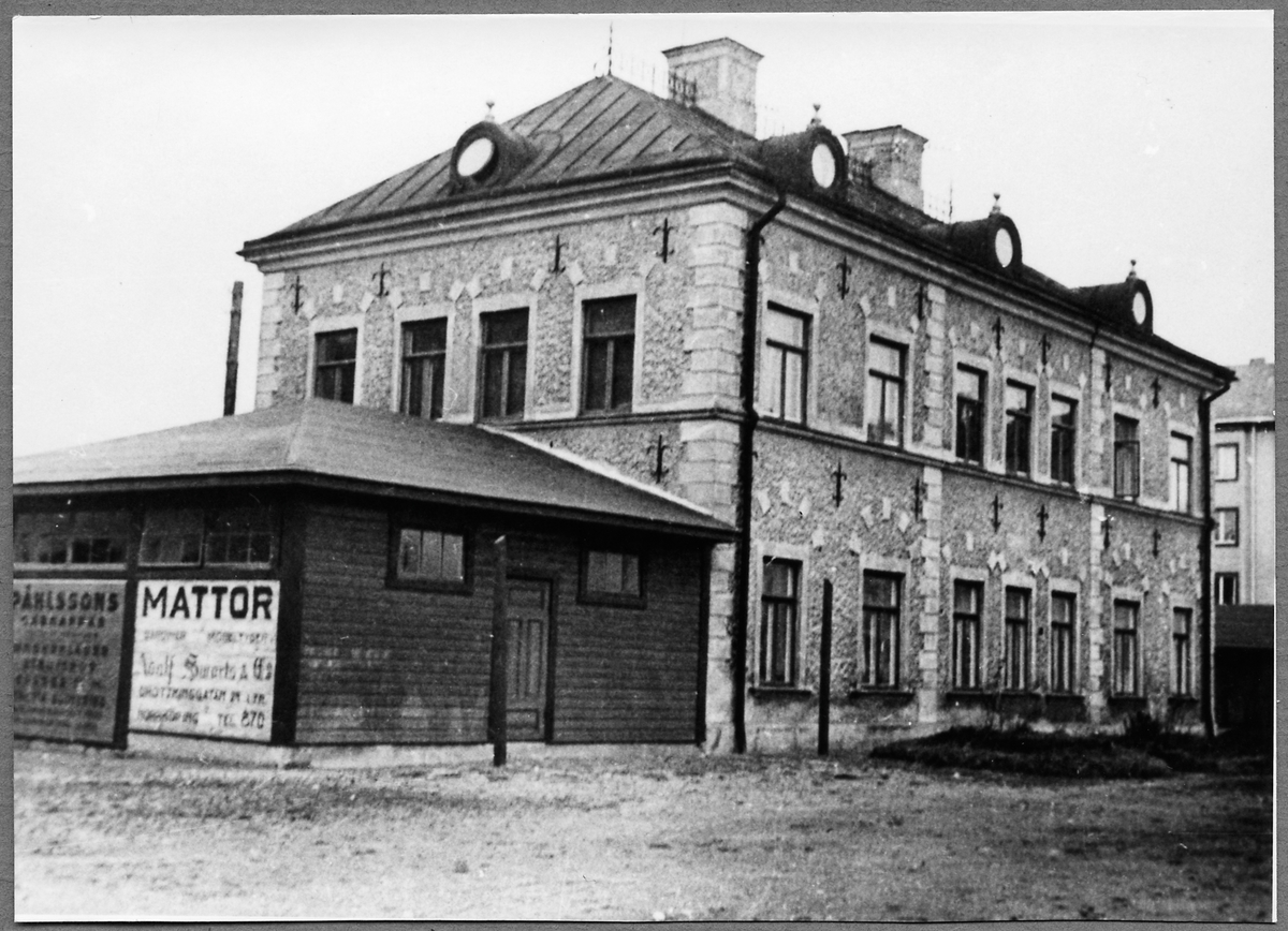 Första stationshuset vid Norrköping Östra sett från spårsidan.