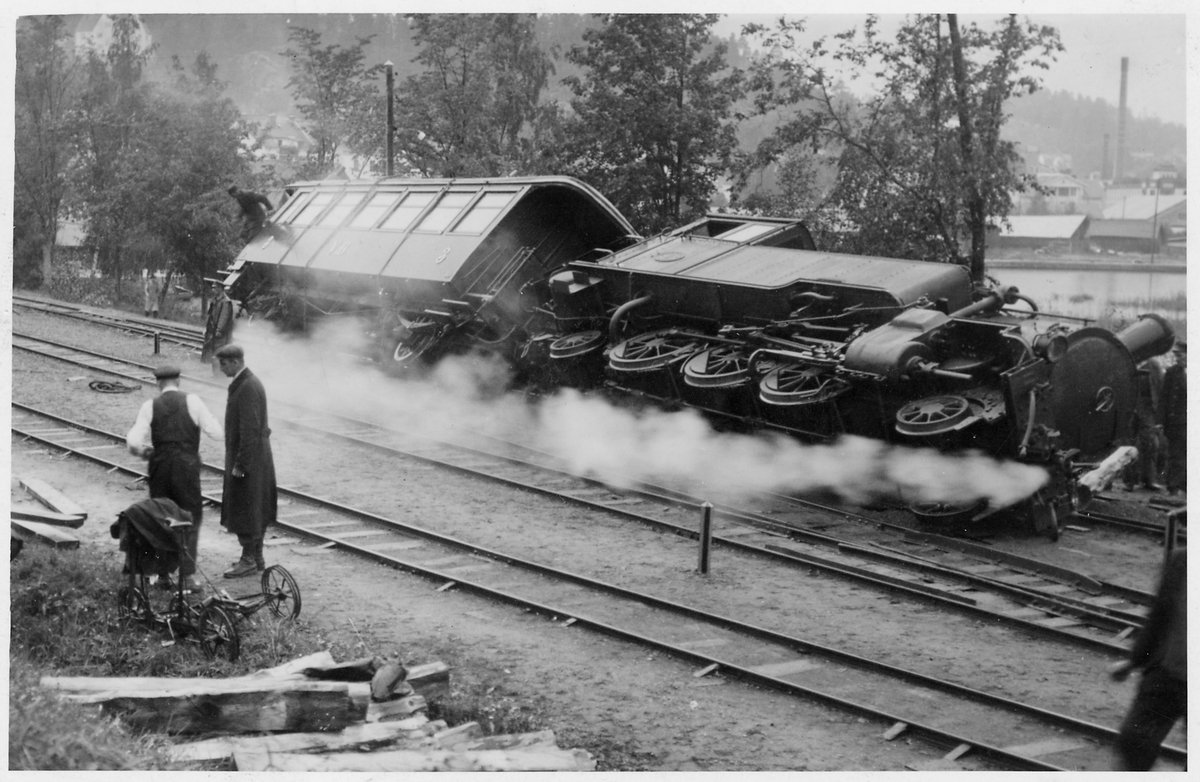 Urspårning vid Valdemarsvik. Norrköping-Söderköping-Vikbolandets järnväg, VB lok 11. Vikbolandsbanan.