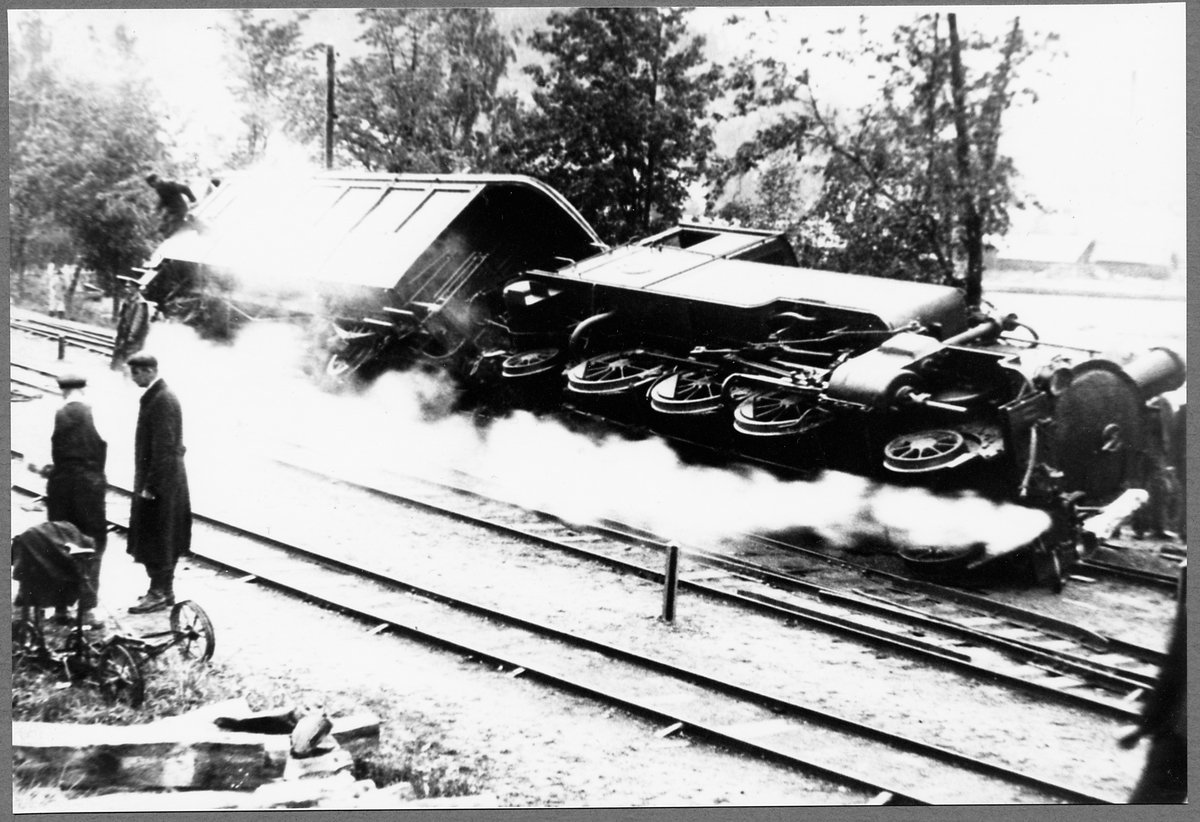 Urspårning vid Valdemarsvik. Norrköping-Söderköping-Vikbolandets järnväg, VB lok 11. Vikbolandsbanan.