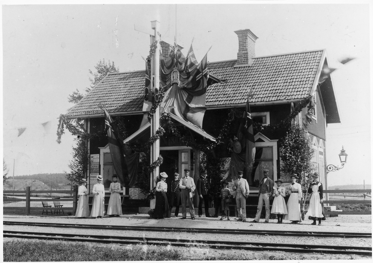 Kuddby stationshus har utsmyckats inför ett kungabesök.