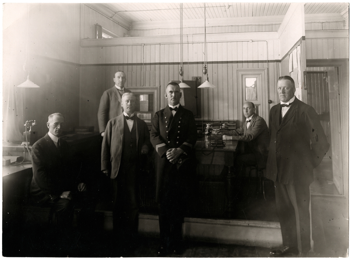 Stationsinspektor Gustaf Dahlström med personal i Linköpings fraktgodsexpedition.