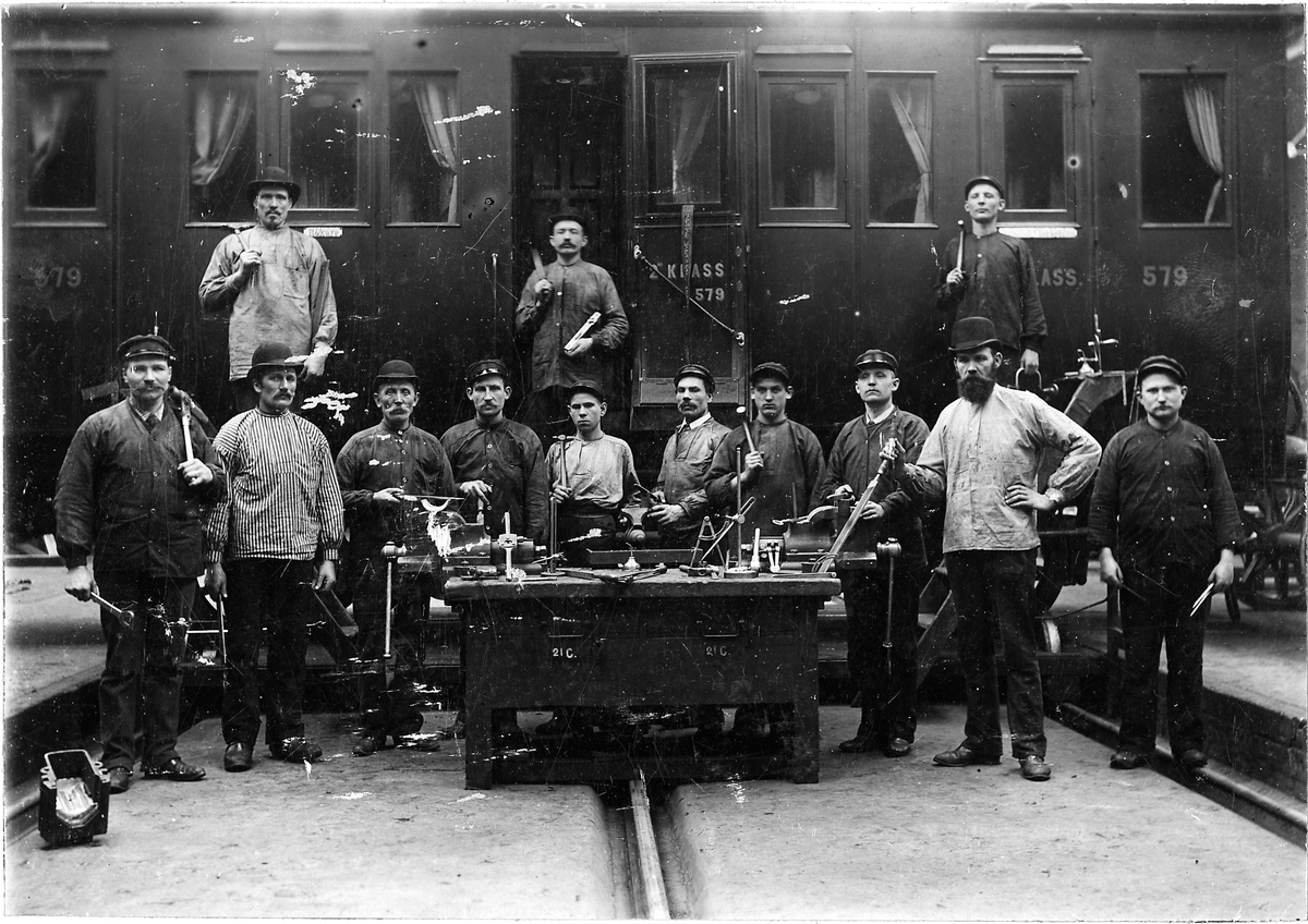 Verkstadsarbetare på huvudverkstaden i Malmö. Statens Järnvägar, SJ personvagn 579.