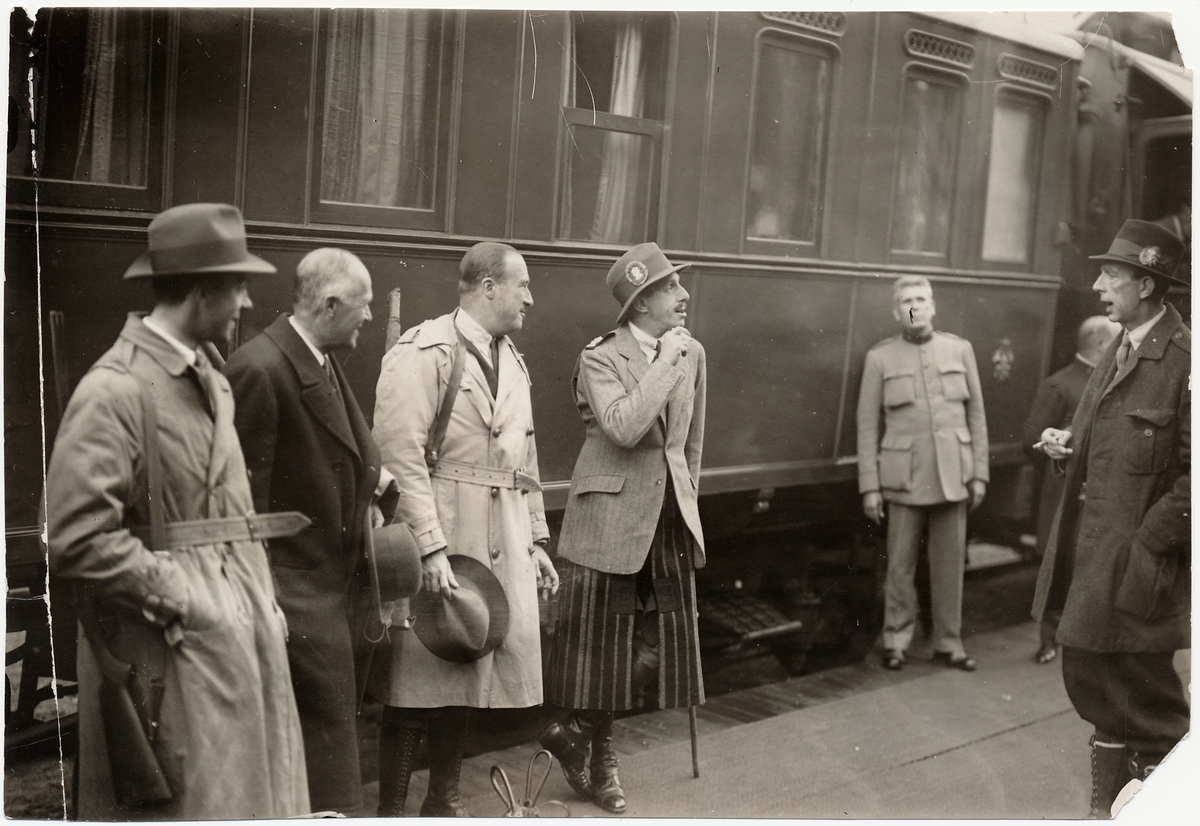Titel: Konung Alfons XIII av Spanien på järnvägsstation.