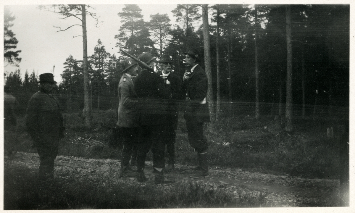 Konung Alfons XIII av Spanien och Konung Gustaf V med jaktsällskapet under älgakten.