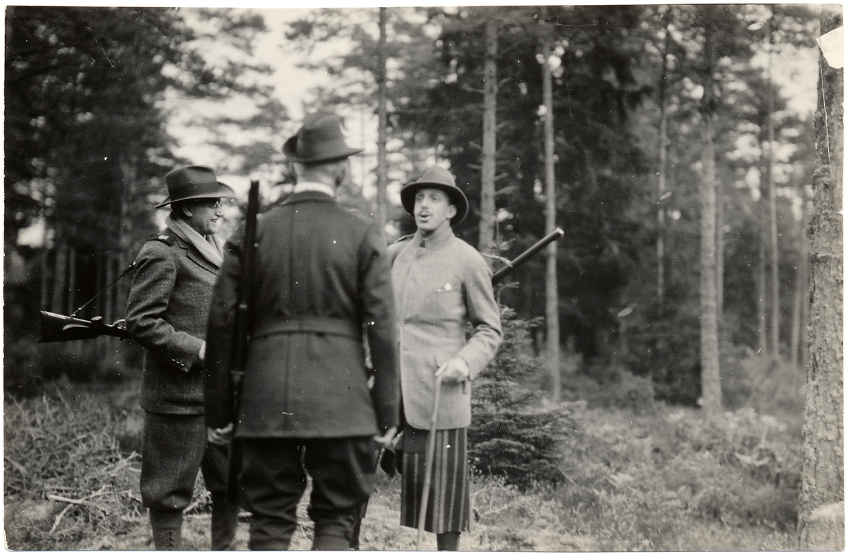 Konung Alfons XIII av Spanien med jaktsällskapet under älgakten.