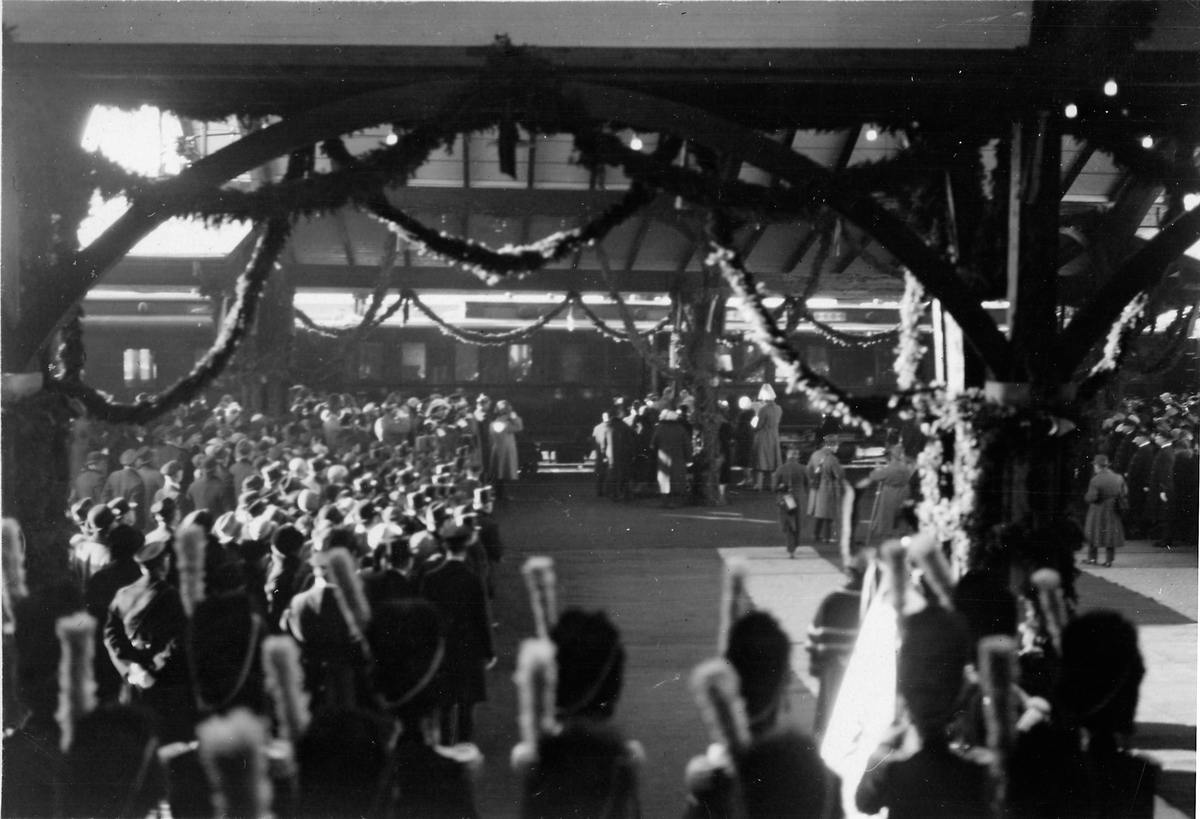 Mottagning vid kungligt besök vid Stockholms centralstation.