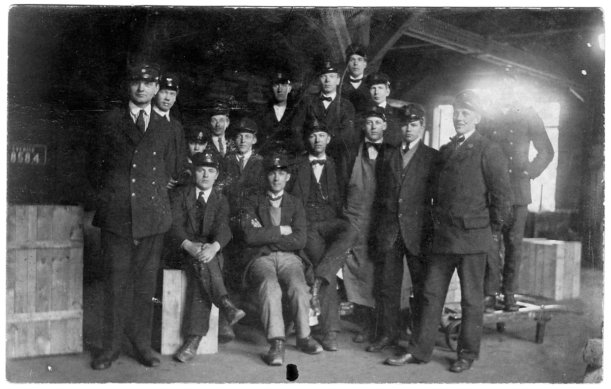 Gruppfoto på personalen i gamla godsmagasinet.