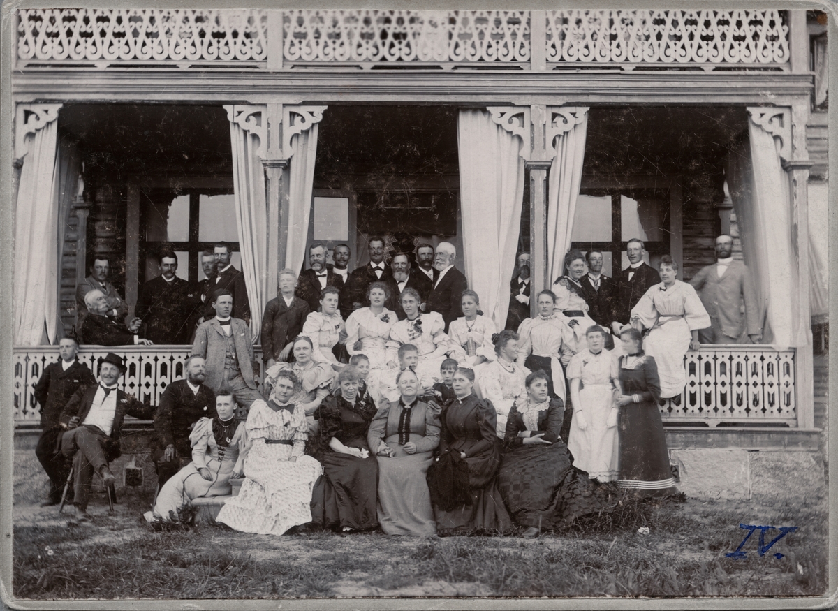 Gruppfoto av middagsdeltagare utanför 'Johanssonska villan' - IV (samtliga).
