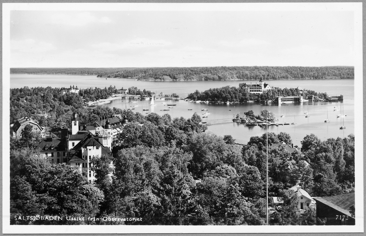 Vy över Saltsjöbaden med Grand Hotel Saltsjöbaden. Utsikt från Observatoriet.