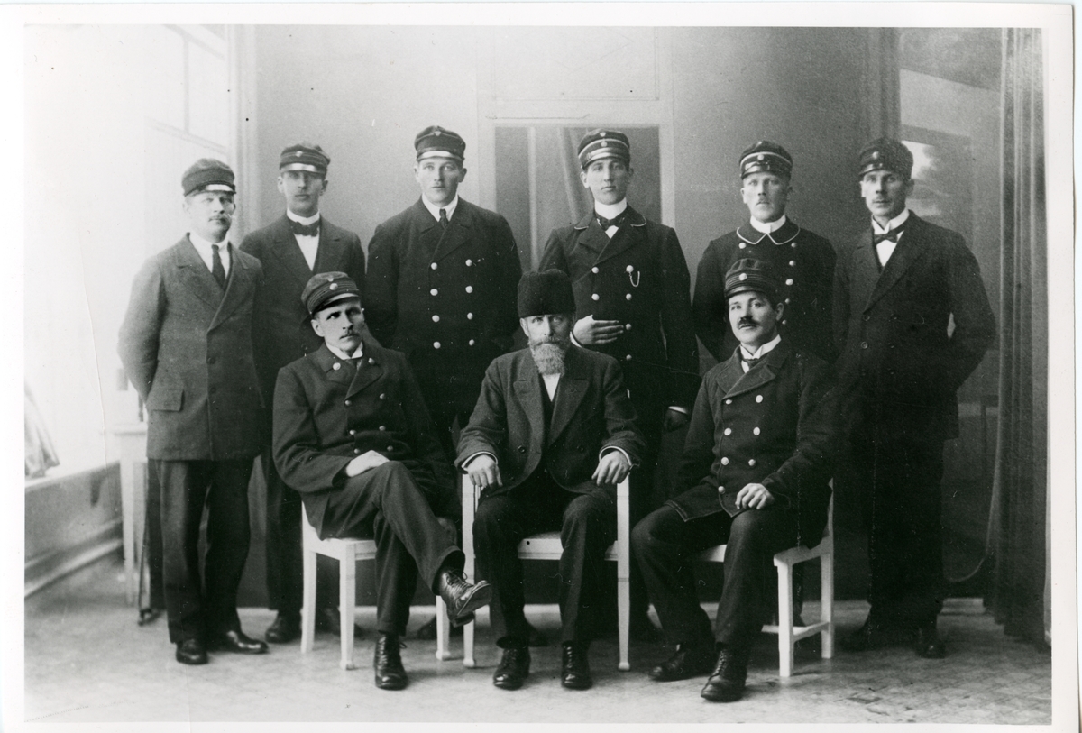 Gruppfoto av åkande personal från Väderstad - Skänninge - Bränninge Järnväg, VSBJ.
