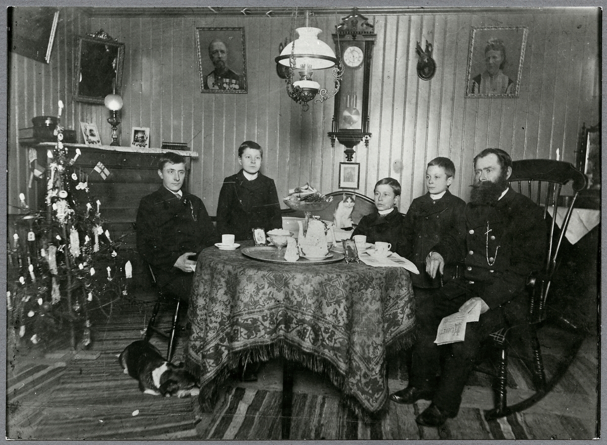 Banvakt Johan August Johansson med familj i banvakststugan vid Rockviksdalen på julafton år 1895.