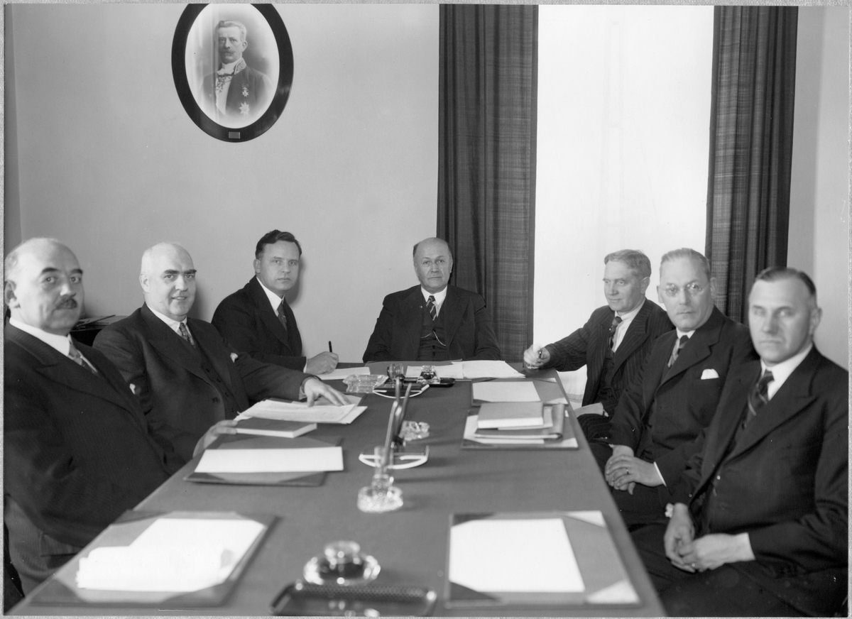 Titel: Tjänstemän anställda vid Statens Järnvägar har ett möte hos Tor Emers.
