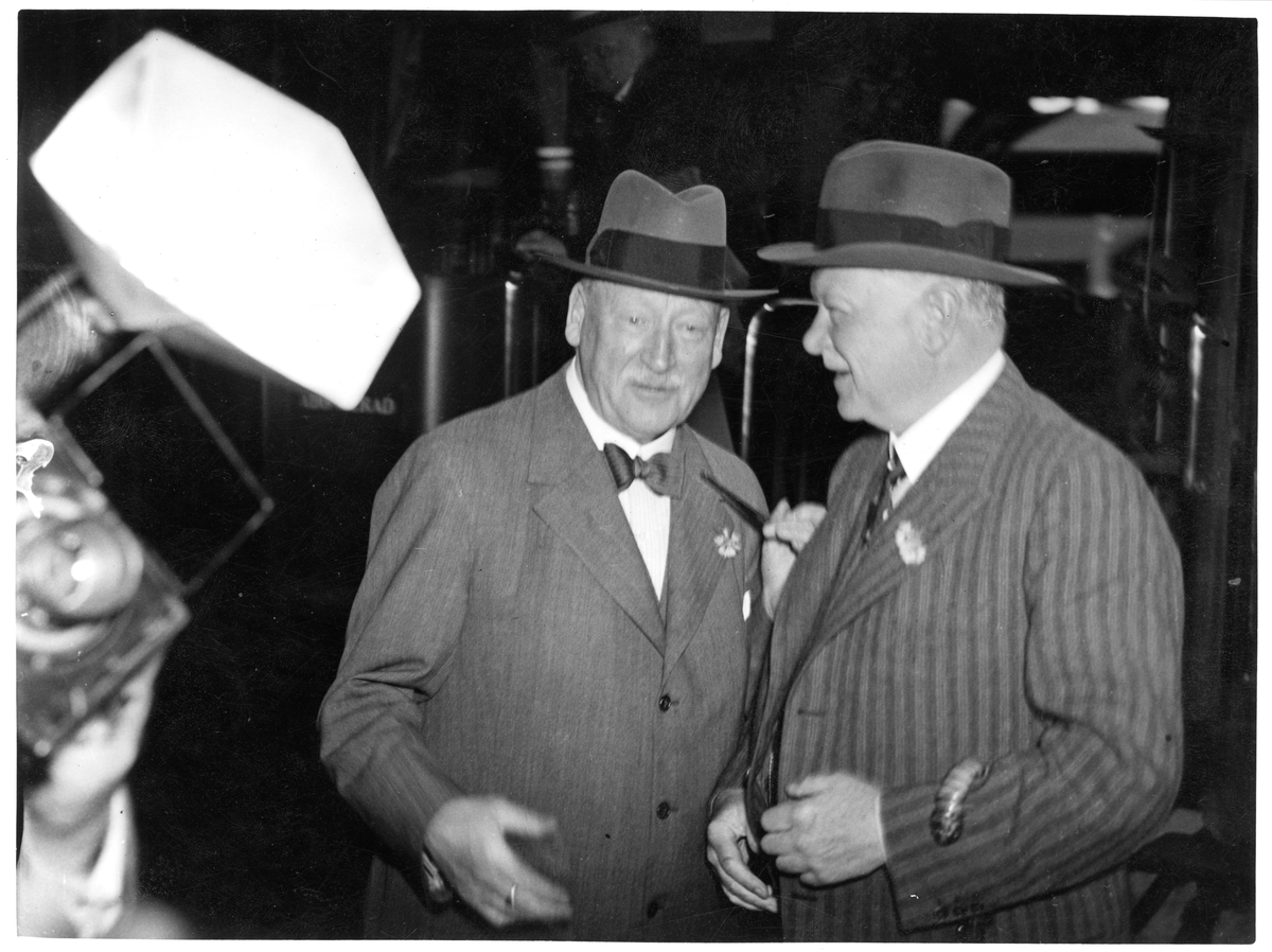 Bild tagen i samband med Julius Dorpmüllers besök i Sverige. Dorpmüller, till höger i bild, var vid tiden för besöket generaldirektör för Deutsche Reichsbahn samt transportminister under den nazistiska riksregeringen. Till vänster står Axel Granholm, dåvarande generaldirektör för Statens Järnvägar.