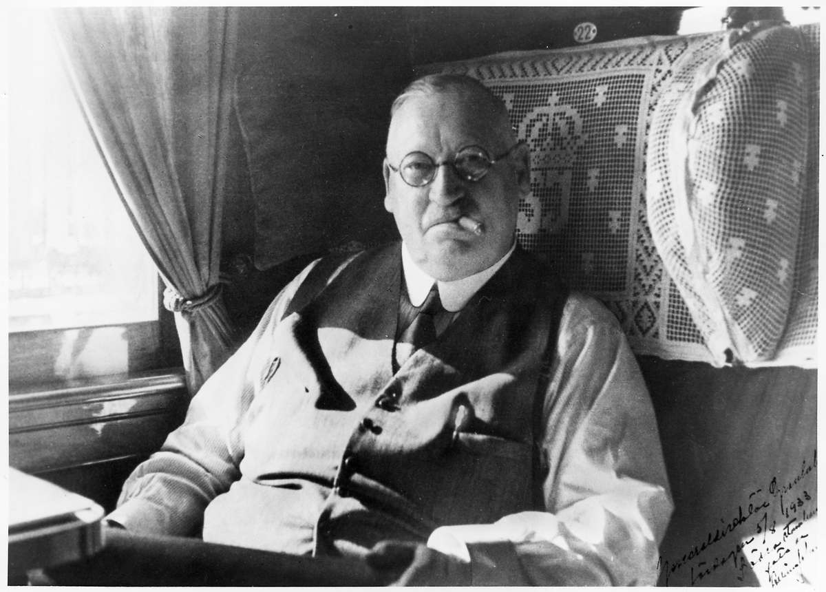 Generaldirektör Axel Granholm fotograferad på ett tåg på Södra stambanan lördagen den 5/8 1933.