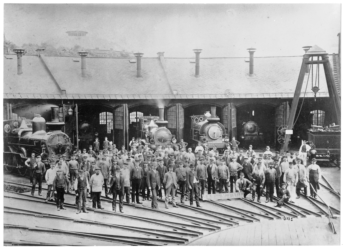 Personal vid Stockholm Norra lokstation. Statens Järnvägar, SJ C 186, SJ Ga 169, SJ M 373.