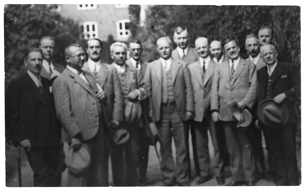 Österrikiska järnvägsmän på studieresa i Sverige. Delegationen på besöket vid Tomteboda Station.