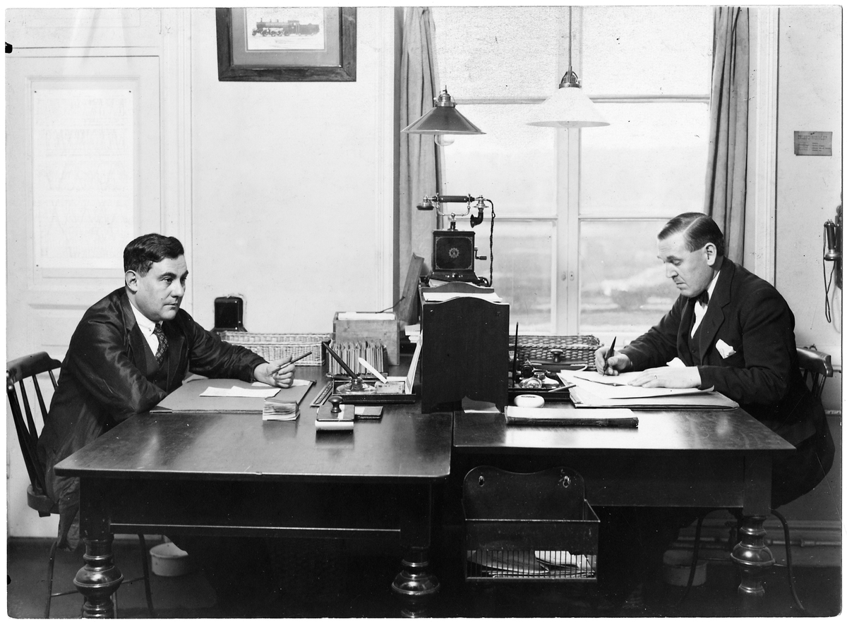 Titel: Lokmästarexpeditionspersonal vid Tomteboda station.