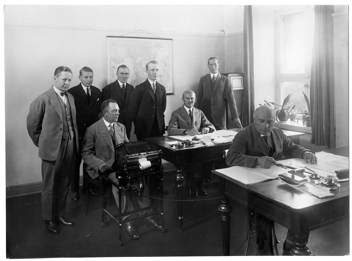 Titel: Personalen på statistiska kontoret vid Tomteboda station.