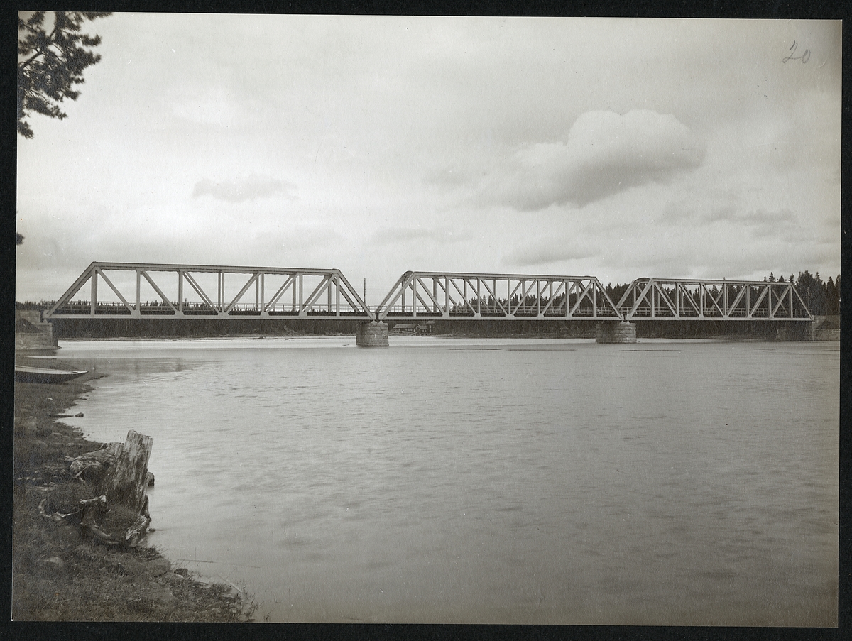 Bro över Hårkan där den rinner ut i Indalsälven vid Lit på linjen mellan Lit och Häggenås.