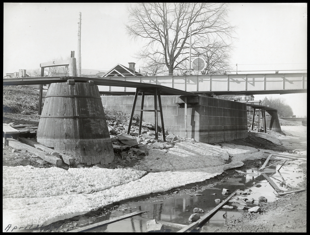 Svängbropelaren vid den tömda Pråmkanalen i Karlstad.