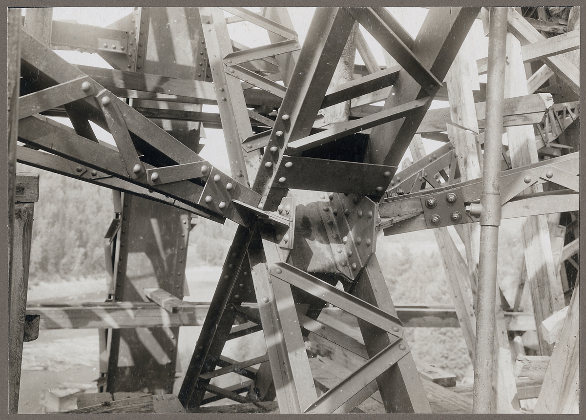 Brobyggnation av järnvägsbron över Ångermanälven vid Forsmo.