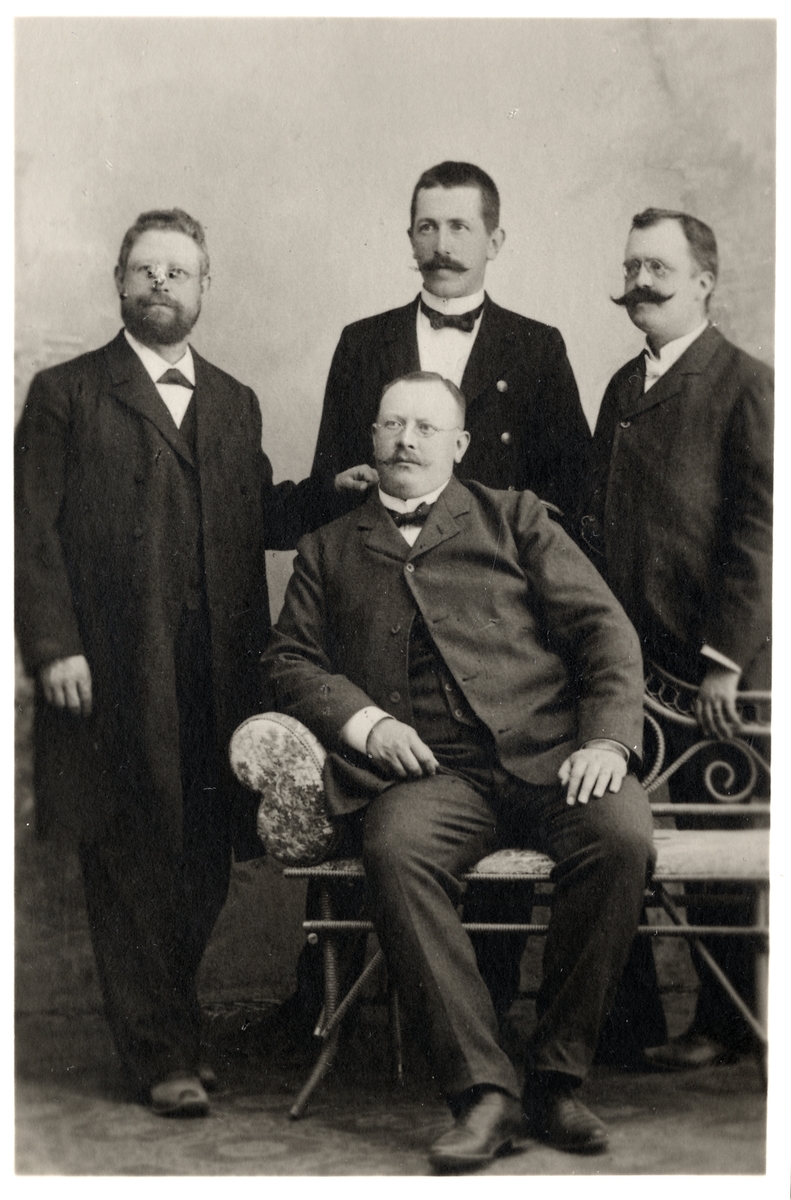 Stins J. A. Hultin, Stins C. I. Mickaneck, Stins G. A. Nilsson, Stins Hj. Östberg. Alla jobbar på Halmstad - Nässjö Järnvägs bolag.