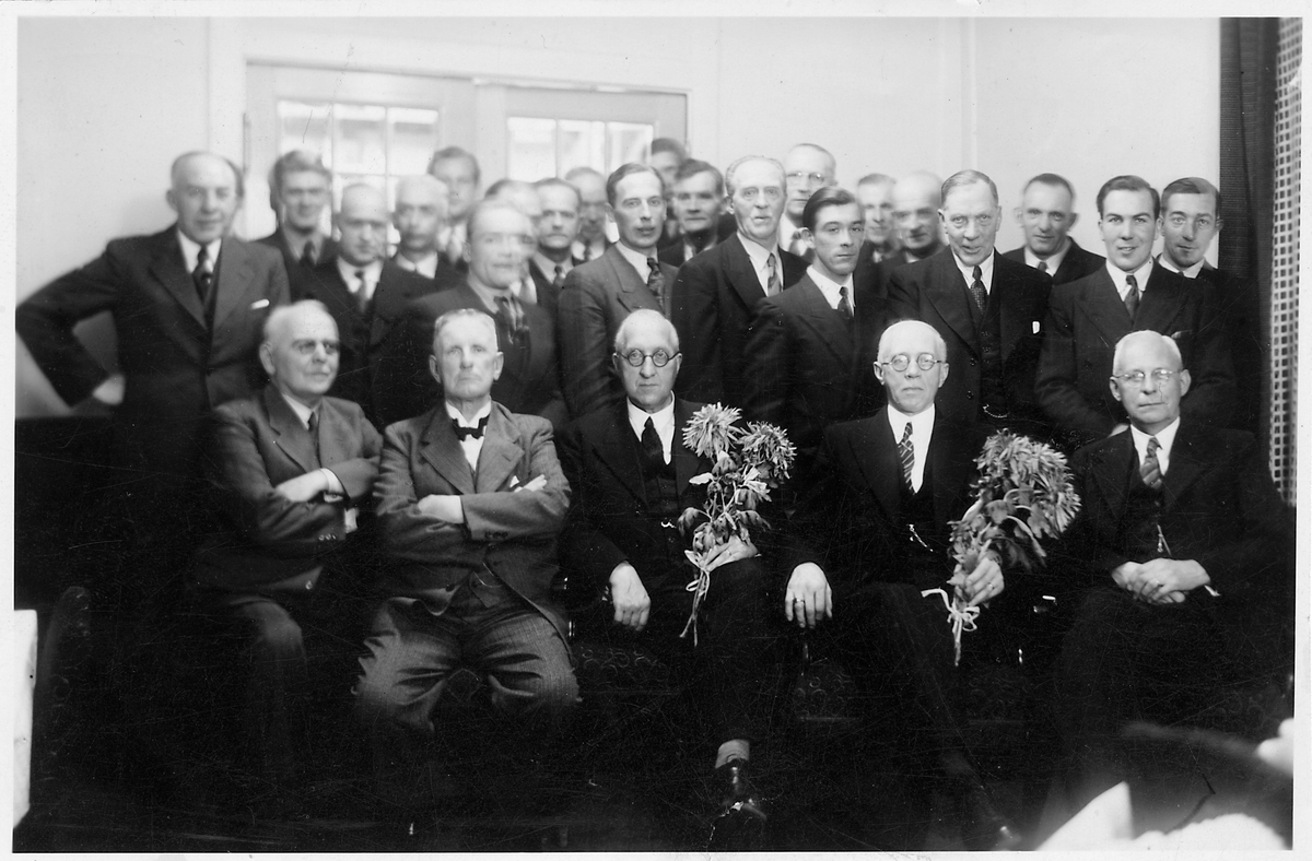 Edlund och Lindskog som går i pension avtackas av övrig personal. Statens Järnvägar, SJ.
