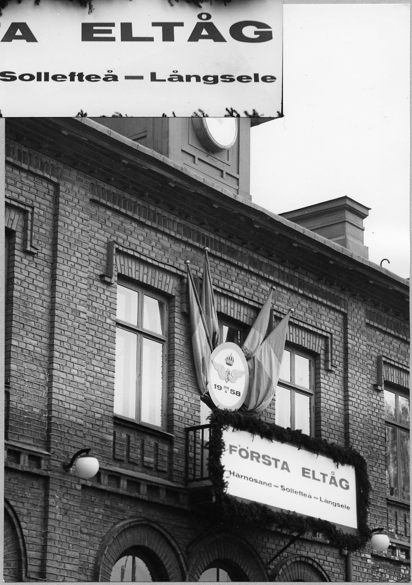 Utsmyckning vid Sollefteå station i samband med invigningen av eldriften på sträckan Härnösand - Sollefteå - Långsele.