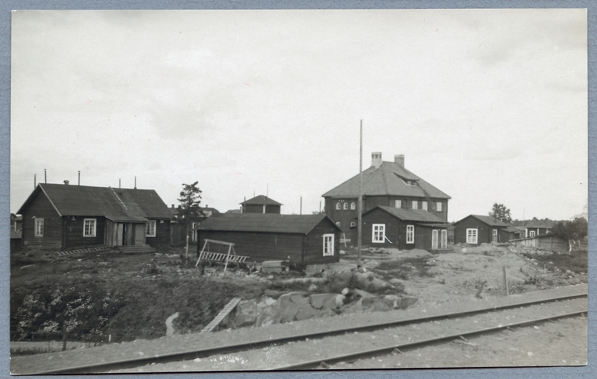 Bostadshus för stationsinspektorn med flera. Baracker som användes av arbetarna vid stationsbygget ses även på bilden, dessa är nu rivna.