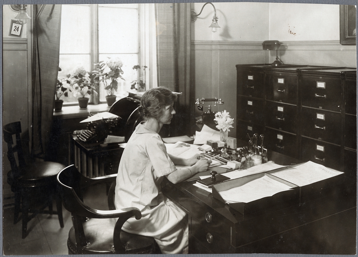Titel: Generaldirektören Axel Granholms Sekreterare Elsa Charlotta Samuelsson.