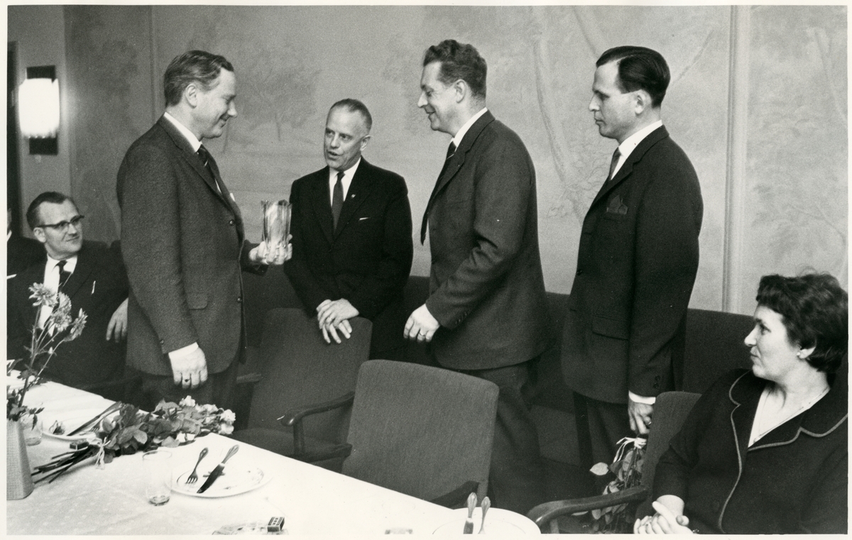 Trafikchef Nelander avtackas under företagsnämndens möte.