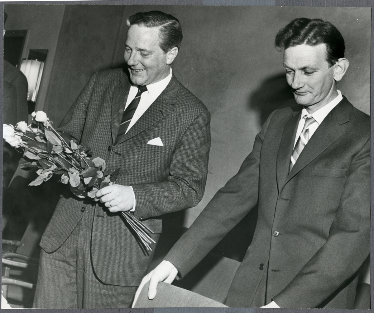 Trafikchef Nelander avtackas under företagsnämndens möte.