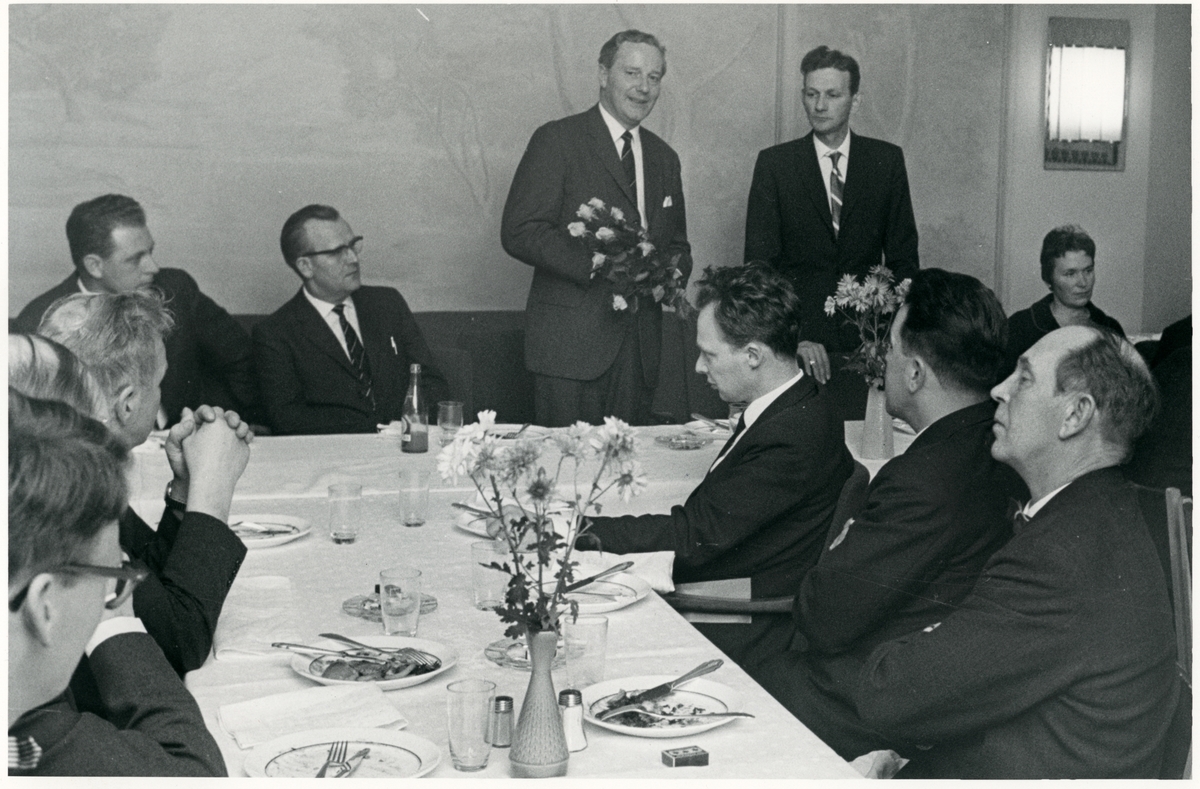 Trafikchef Nelander avtackas under företagsnämndens möte.