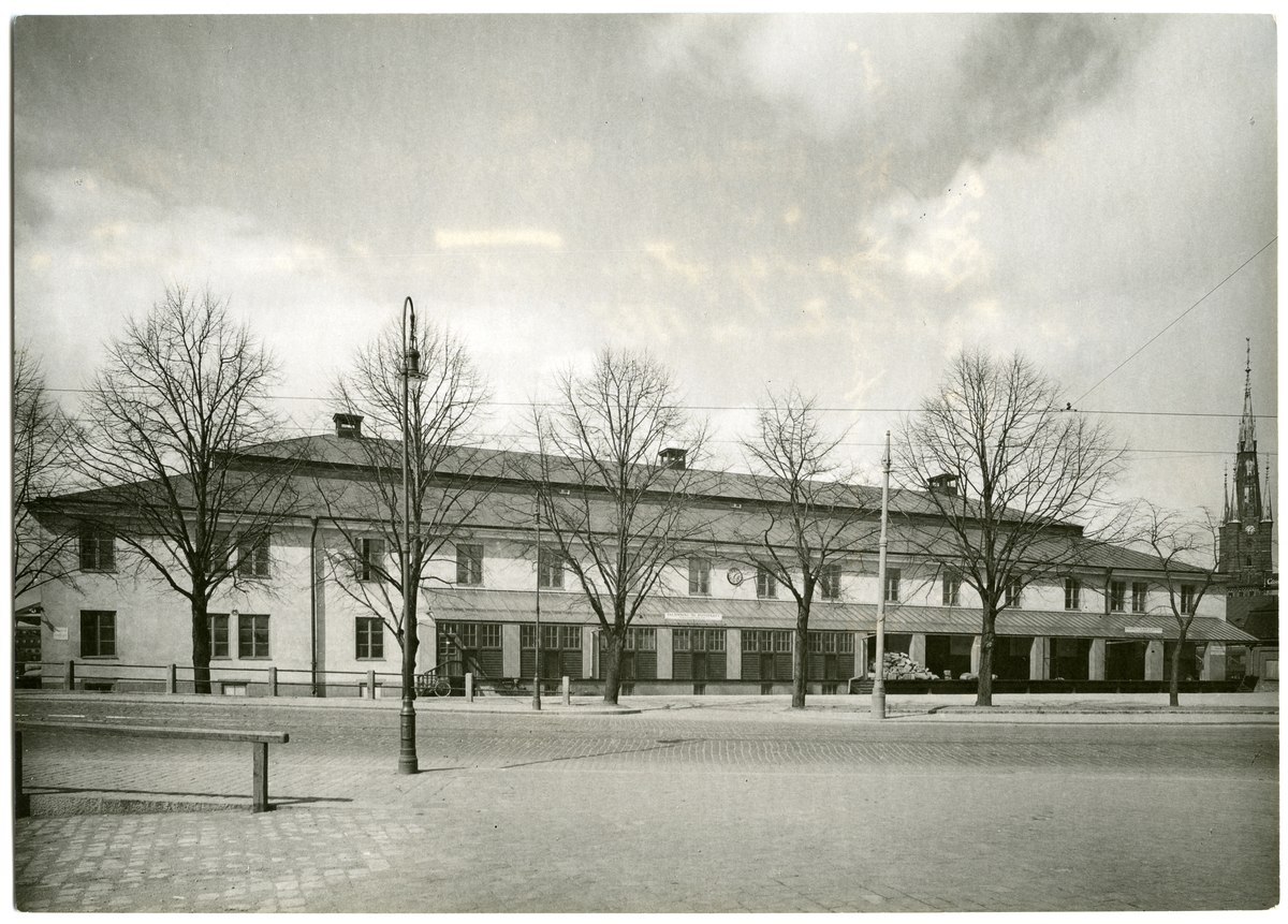 Bangårdspostkontoret med S:ta Clara Kyrka i bakgrunden.