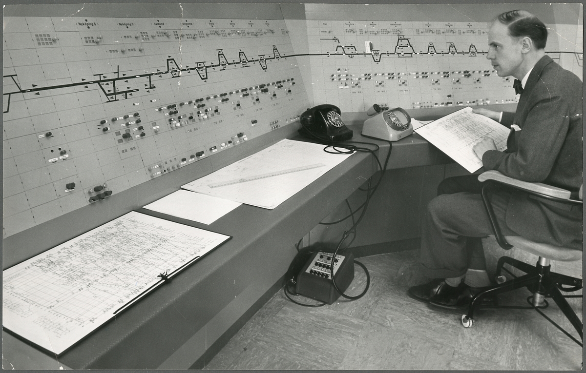 Personal i arbete vid Trafikaktiebolaget Grängesberg–Oxelösunds Järnvägar, TGOJ fjärrställverk.