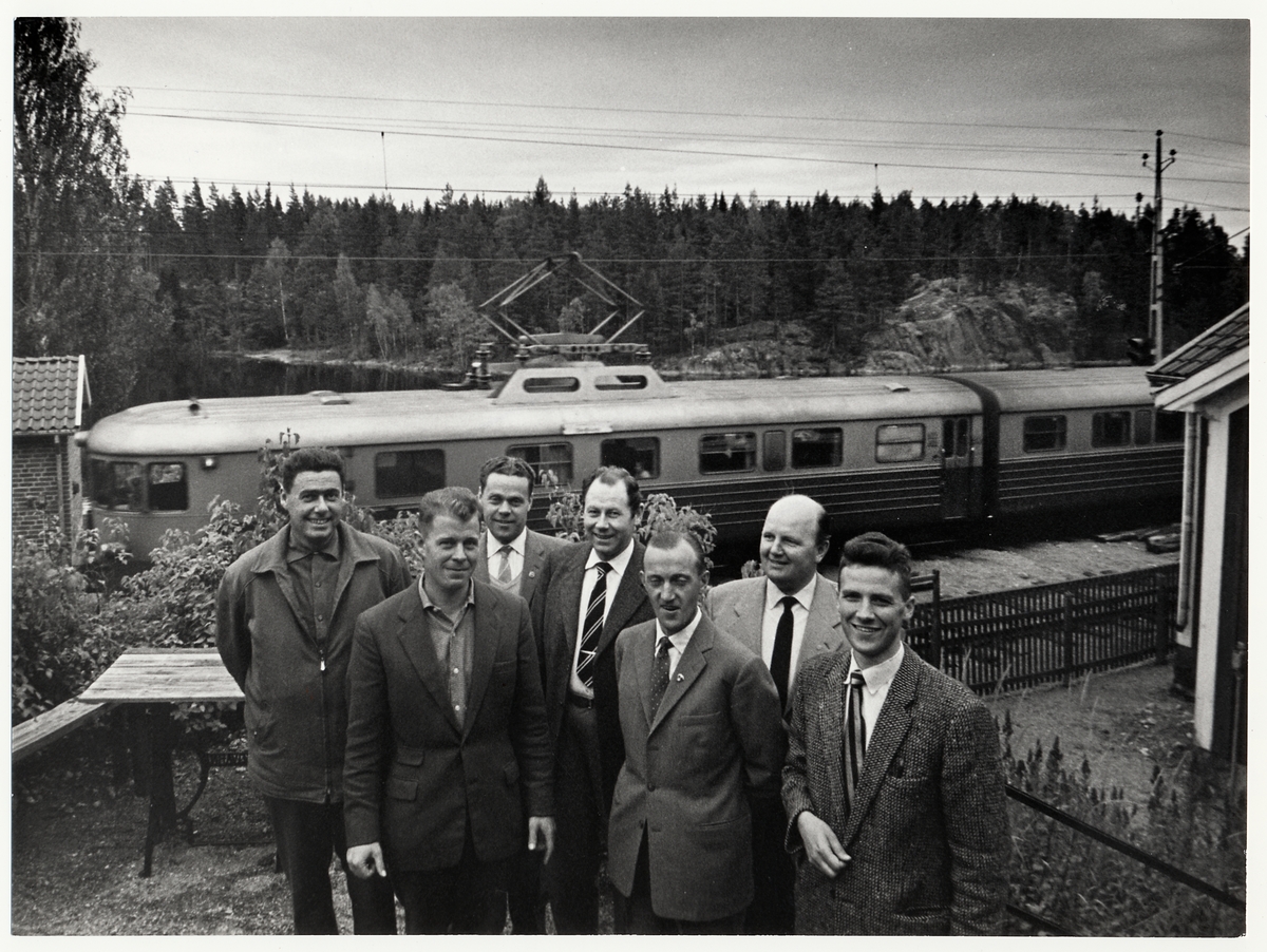 Gruppfoto vid Harsjön, banvaktstuga som används som fritidsgård.