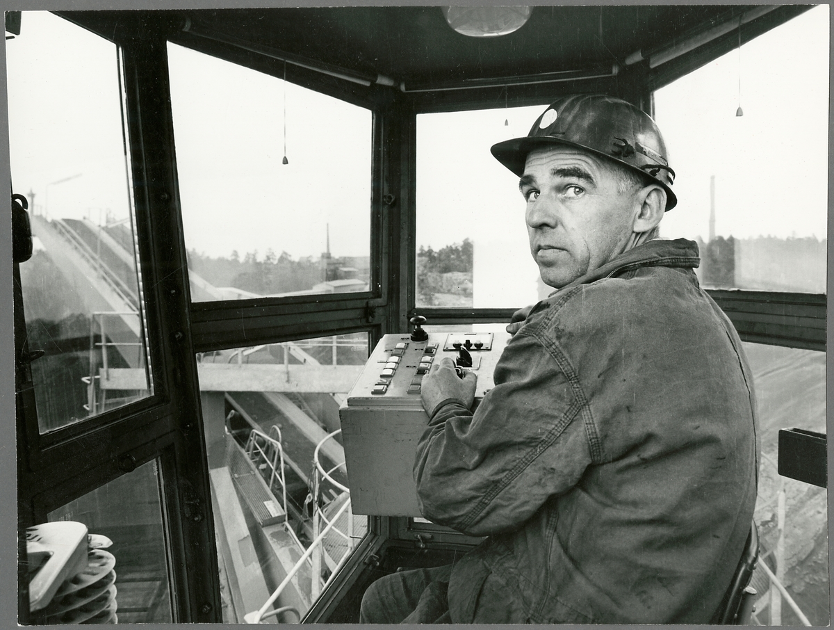 Titel: Trafikaktiebolaget Grängesberg Oxelösunds Järnvägar, TGOJ personal i förarhytt.