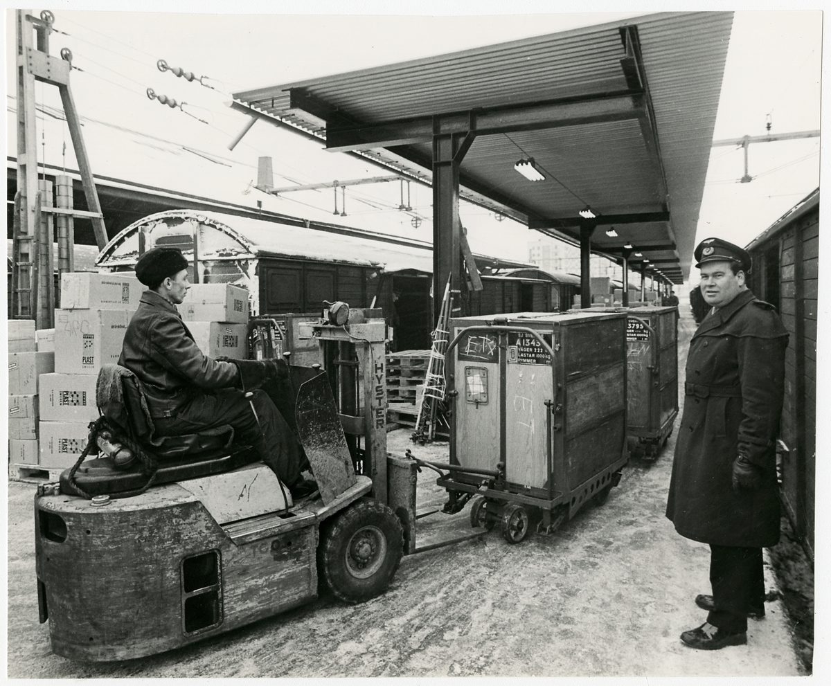 Trafikaktiebolaget Grängesberg - Oxelösunds Järnväg, TGOJ utför lastning med truck.
