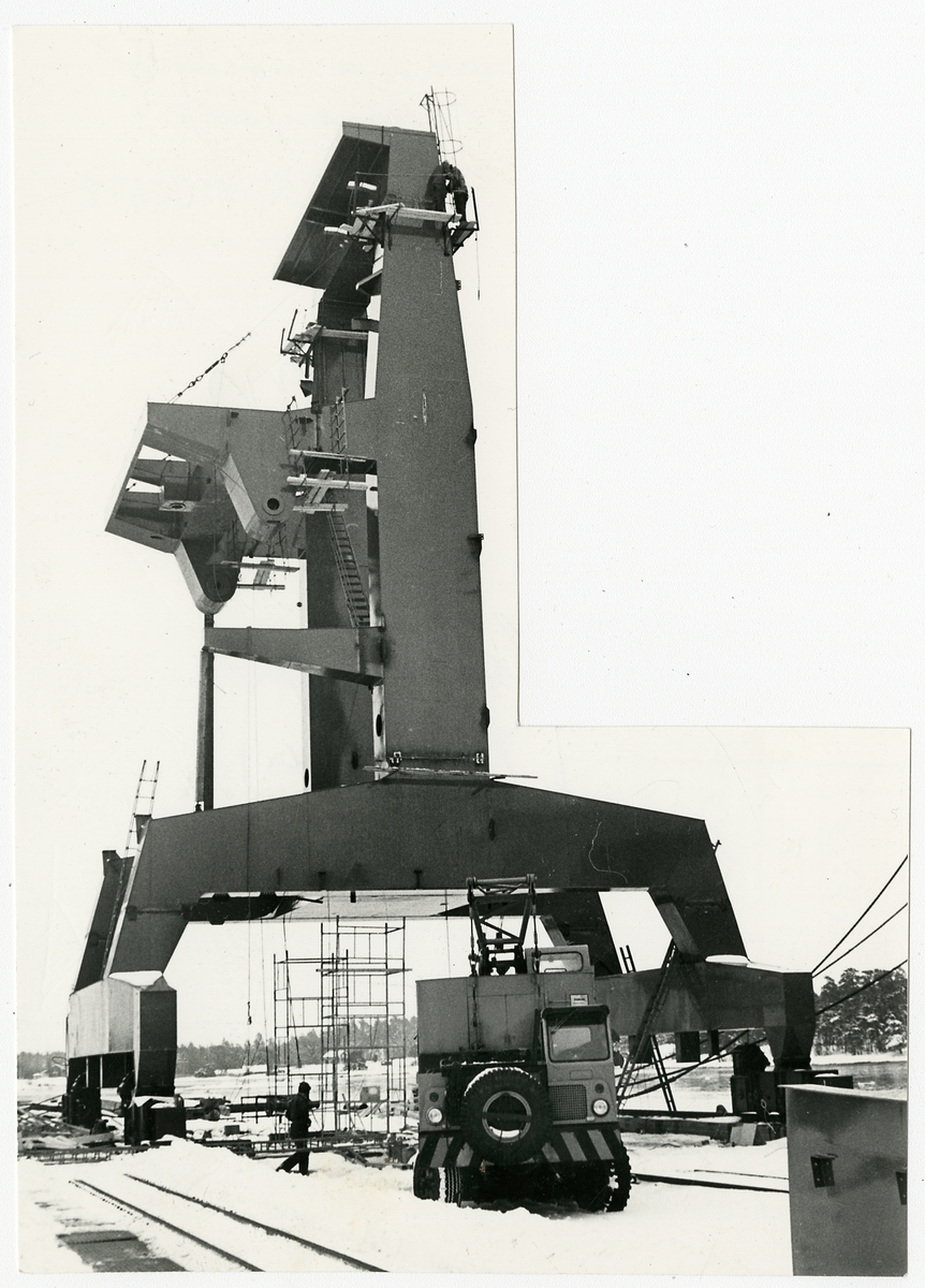 Lastmaskin och kranmaskin i Oxelösund hamn vintertid.