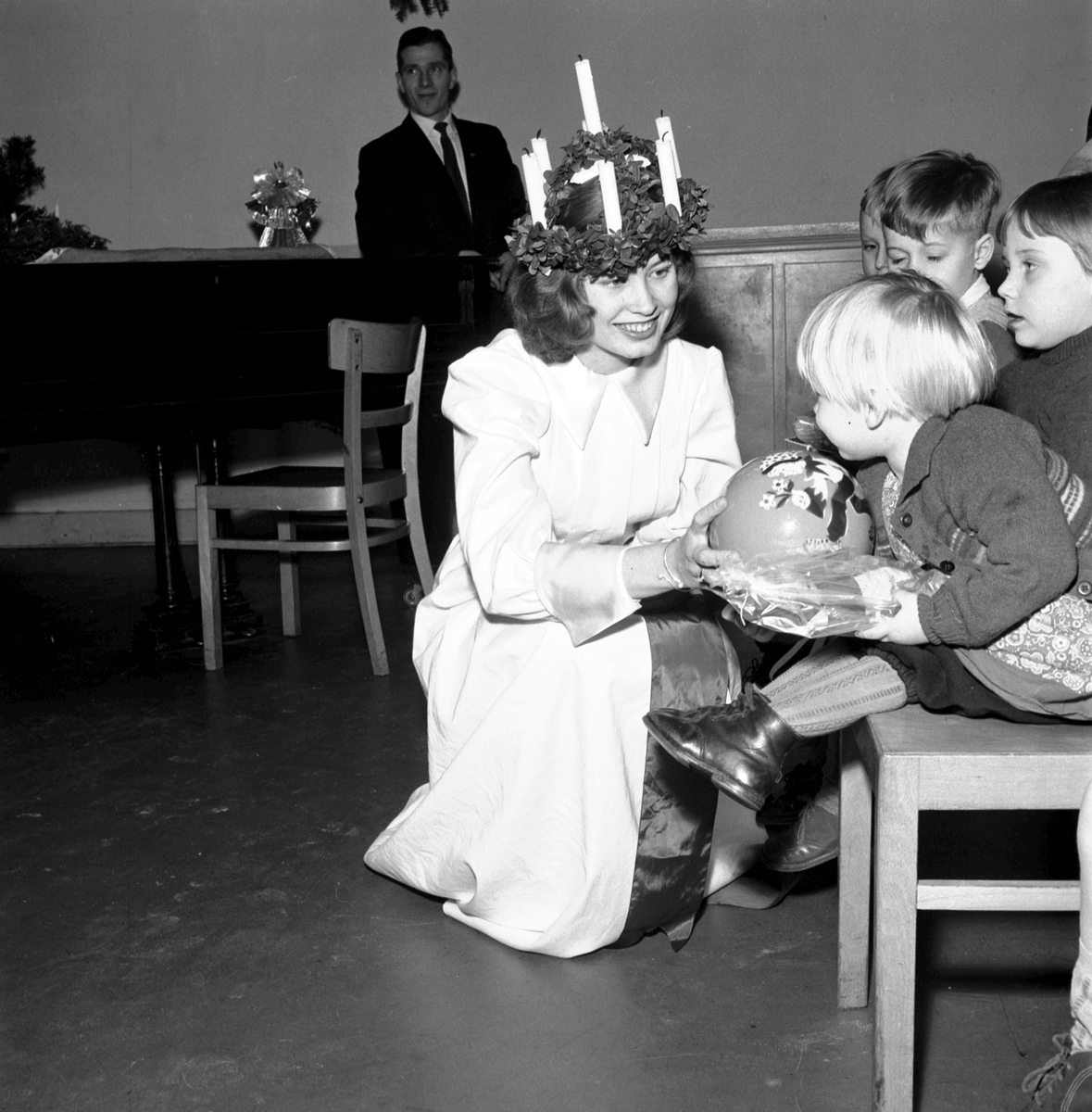 Titel: Statens Järnvägars Lucia, 1958, besöker ett barnhem i Berlin