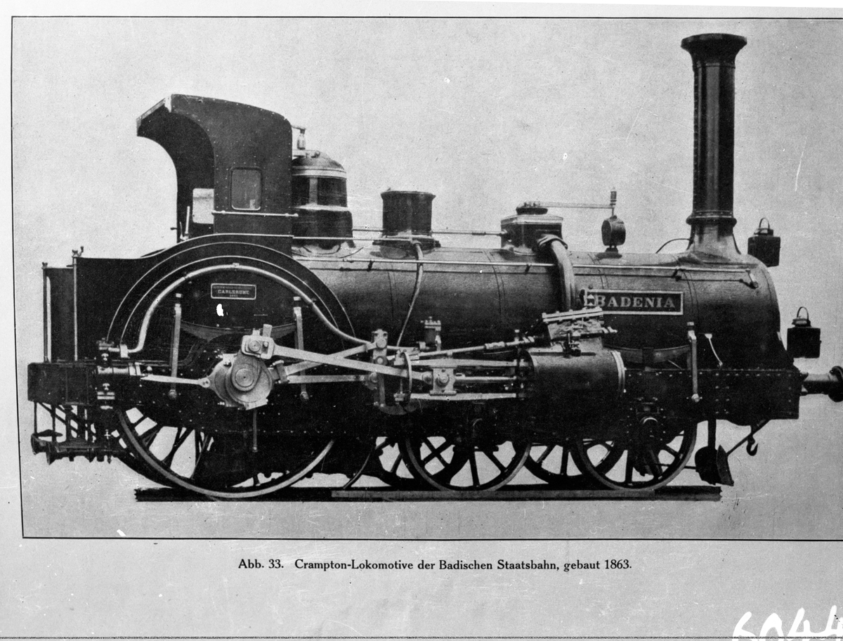 Lok av Crampton-typ tillhörande Großherzoglich Badische Staatseisenbahnen, BadStB lok "Badenia".