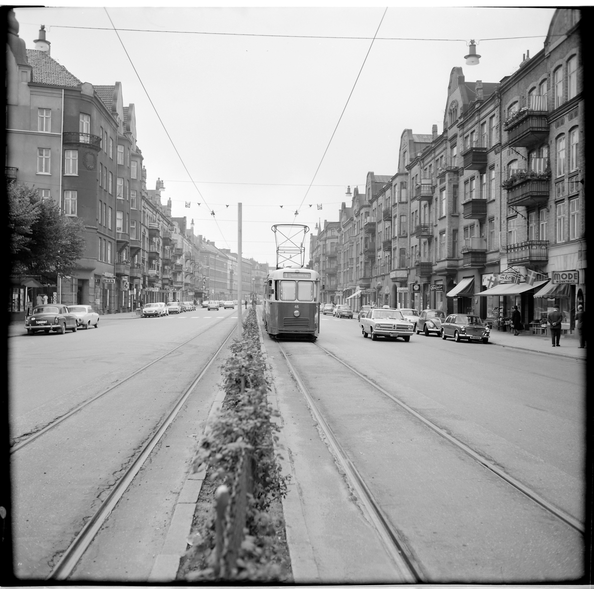 Malmö Stads Spårvägar, MSS H 46 i trafik på Bergsgatan.