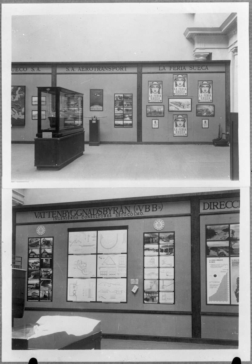 Interiör från utställningshallen, Aerotransport, Vattenbyggnadsbyrån. Världsutställningen i Barcelona 1929.